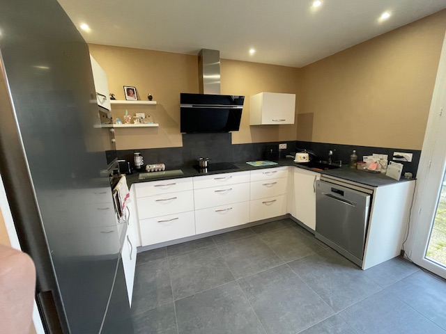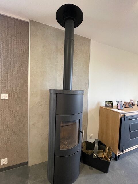 Rénovation complète d’une maison d’habitation avec la Création d’un éclairage décoratif avec intégration d’un ruban LED dans le mur , et installation d’un grand panneau en céramique derrière le poêle