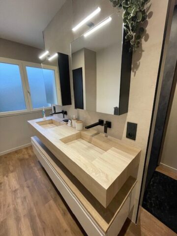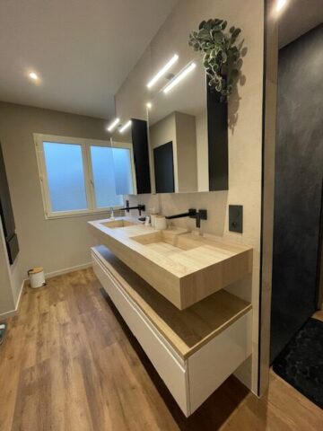 Rénovation salle de bain « Rénovation de salle de bain avec douche traversante : un aménagement original et moderne »